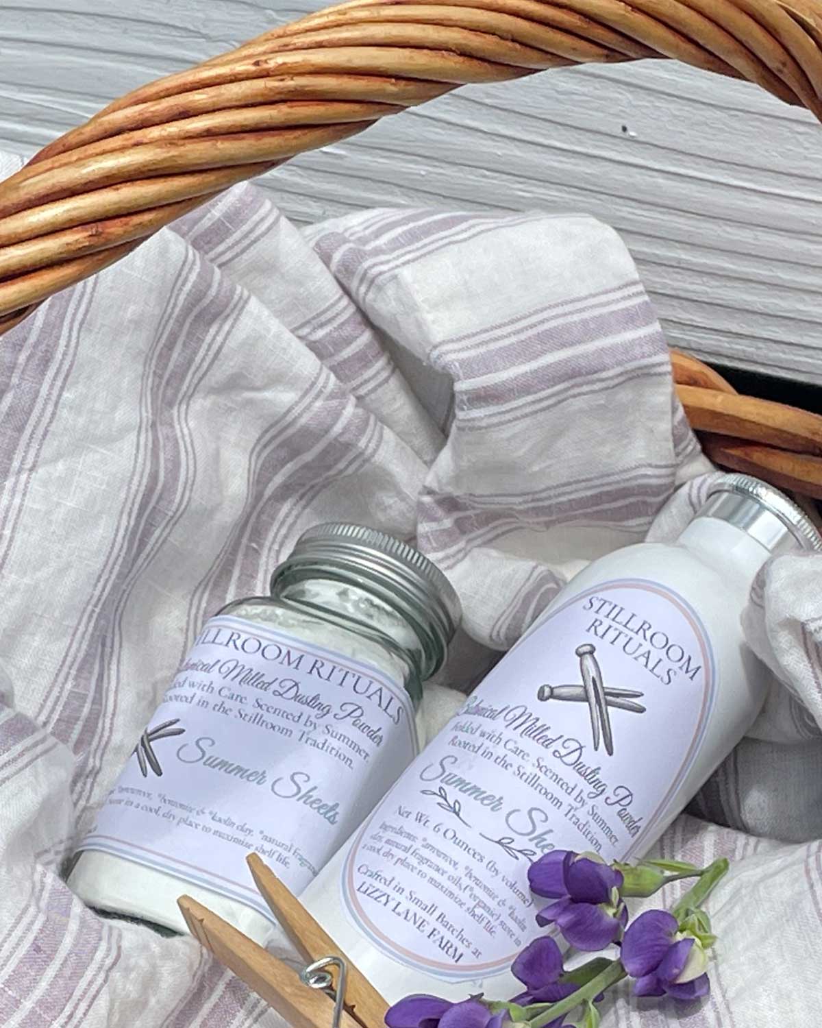 Stillroom powders are used on the body after bathing, and also folded into linens, drawers, and clothing. This dual use is intentional — a return to how powders were once kept and used throughout the home.