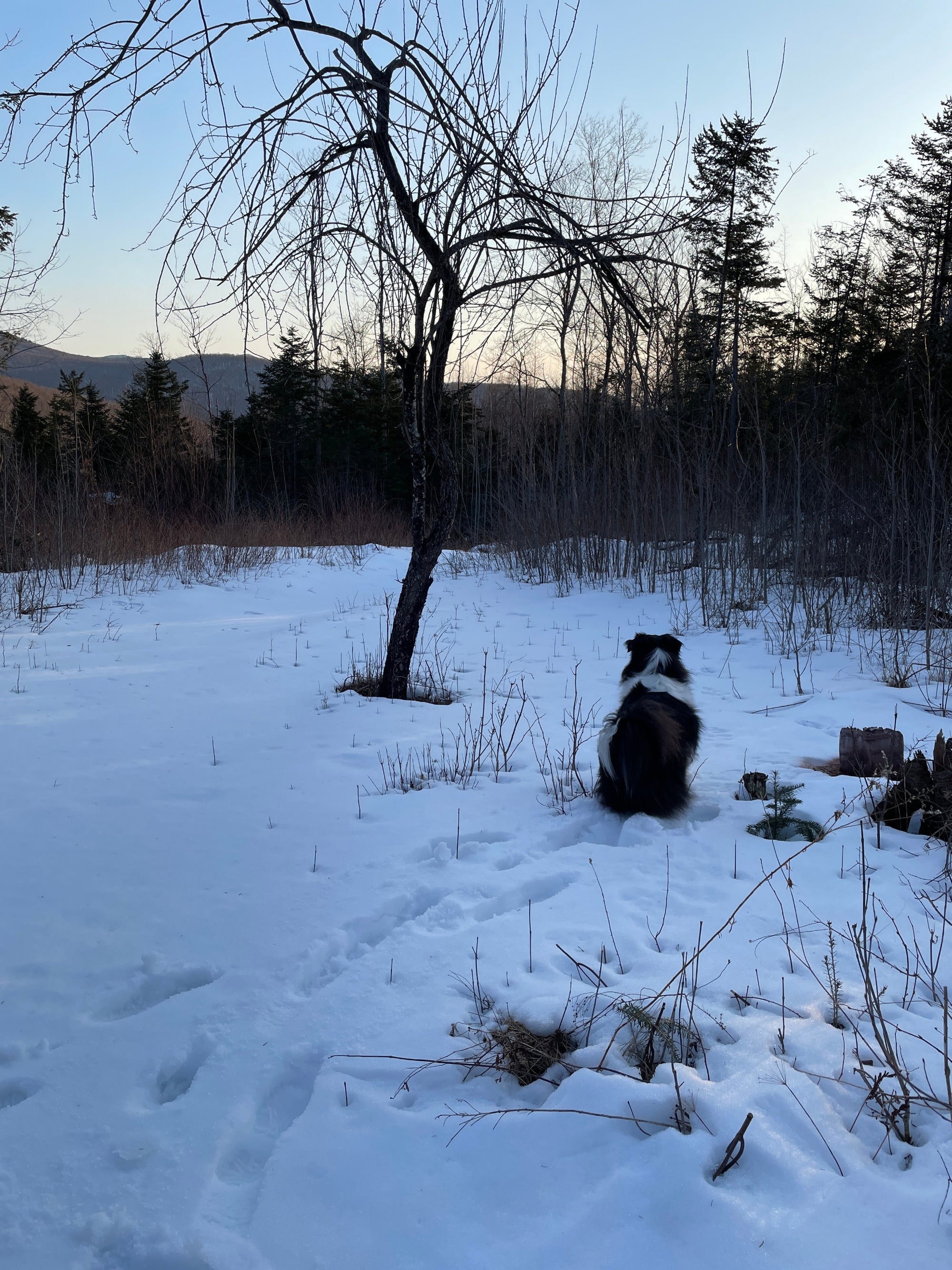 The quiet path home,fresh fallen snow, gently wild, and watched over by Buddy.