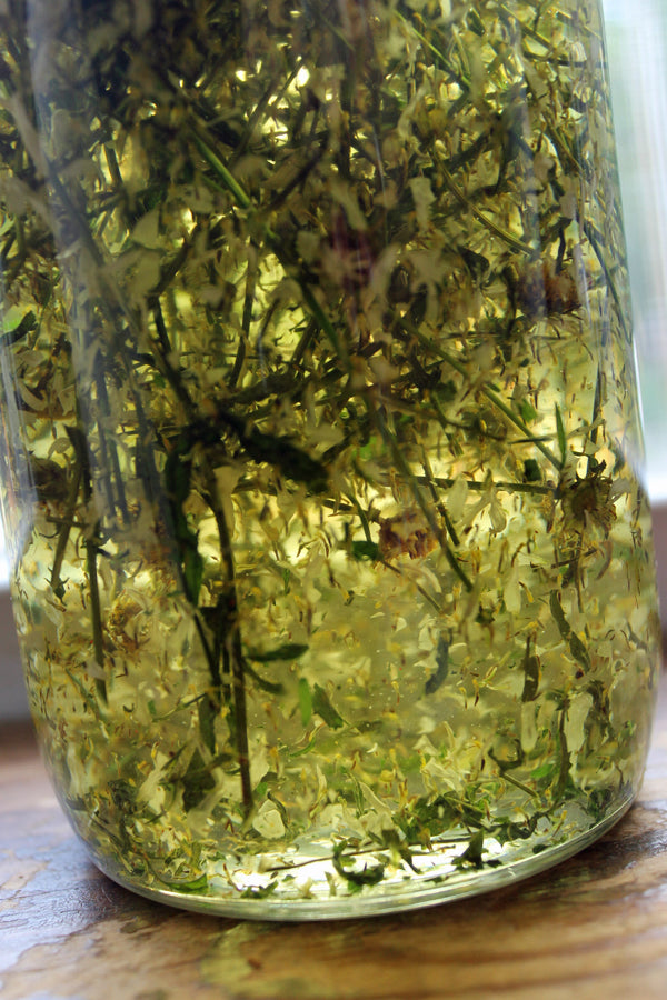 Every perfume is blended slowly, by hand, with dried herbs, flowers, and natural oils — lavender spikes, oak leaves, rosebuds, and roots.