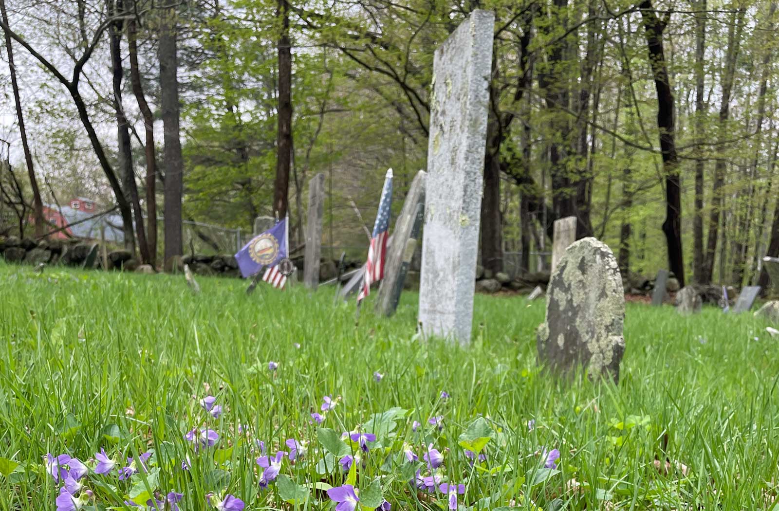 The violets remember. Beneath a weathered stone marked 1825, wild violets bloom each spring, quiet witnesses to history, love, and the passage of time.